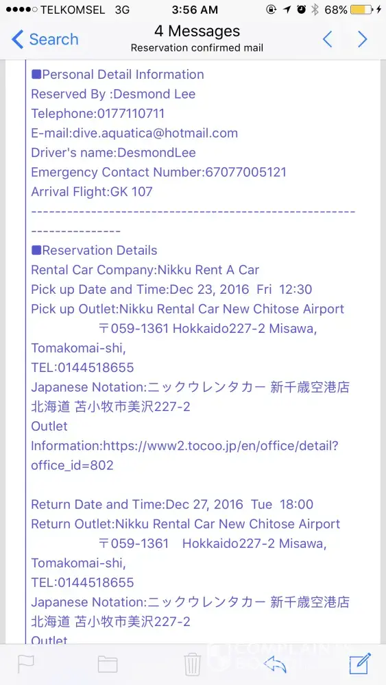 Once we reached hokkaido airport we then also had a difficulty trying to contact our car rental as it had been booked for the 23rd dec.