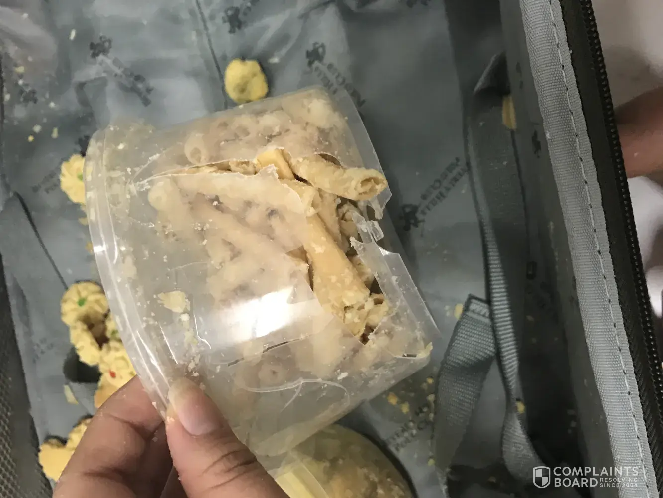 I want to complain to Malaysia Airlines Kuching to kuala lumpur ... after the transfer to Singapore. I want to sell all the cookies on the suitcase all broken ... ... I can not sell ... ...HOW NOW ???