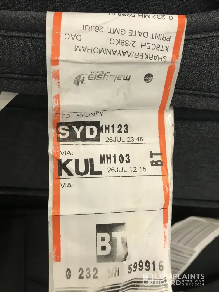 Good morning. I am writing this letter on behalf of my newly married wife who travelled from Dhaka, Bangladesh to Sydney, Australia by Malaysian airlines ( Flight- MH0103, Seat no. 22F, Zone-D, departure from DAC at 1215 to KUL on 26 JUL 2019 & Flight- MH0123, Seat 27E departure from KUL at 23:45 to SYD Name: Fahmida Zaman Promy, Passport no: BY 0823694, one luggage has been received by check in counter and gone through the check in Dhaka but when she has landed In Sydney at 10am on 27 July 2019 and received one unlocked ( broken lock) luggage without her very important and valuable gold which has value AUD $10, 000 We are completely socked and strongly complaining about that and want full compensation also she is mentaly upset beacuse these gold her marriage Jewellery. My email is: [protected]@gmail.com