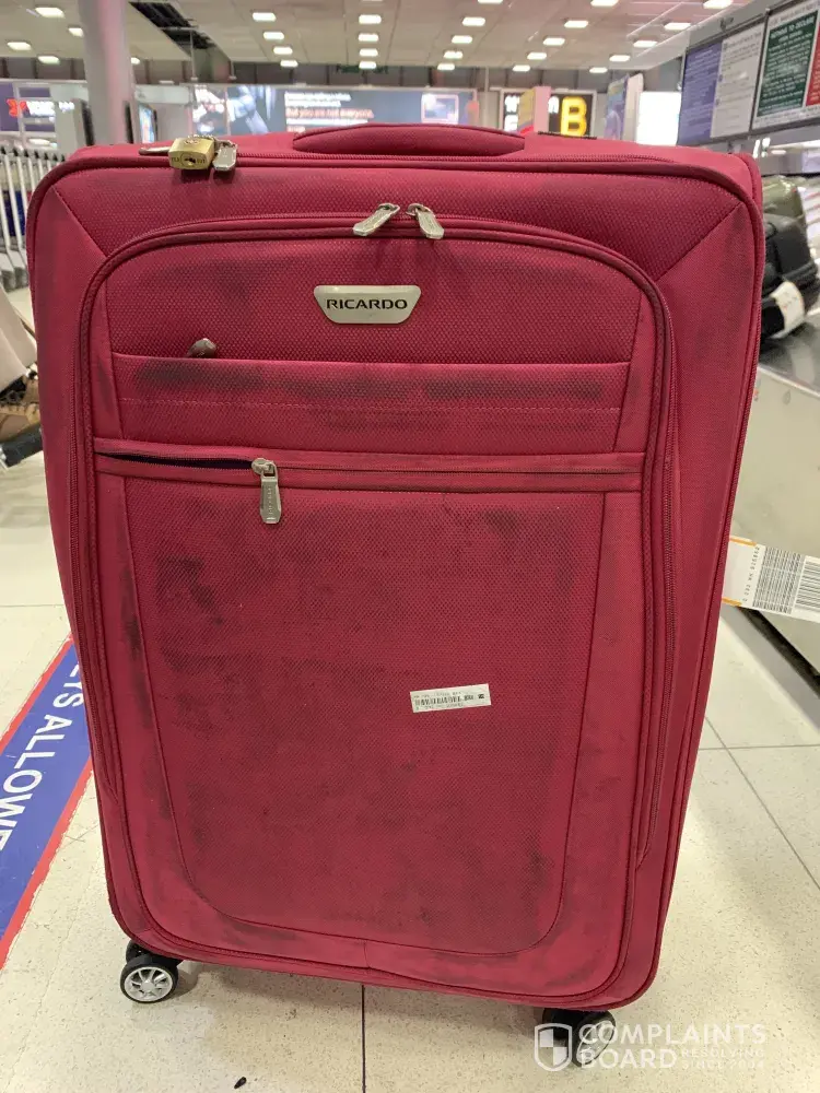 2) On Aug 5, 2019, when I received my luggage at the baggage claim in Bangkok, I found my baggage completely discolored from it's original color. It is extremely dirty. Please see photos attached.