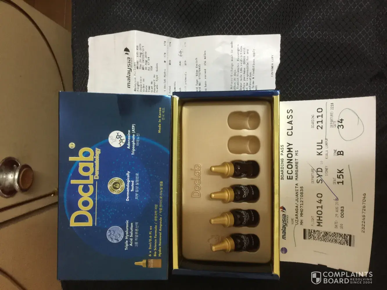 I would like to seek refund for my recent inflight purchase of DocLab hydro renewal ampoules on board flight MH140, from Sydney to Kuala Lumpur, on 29th of August.