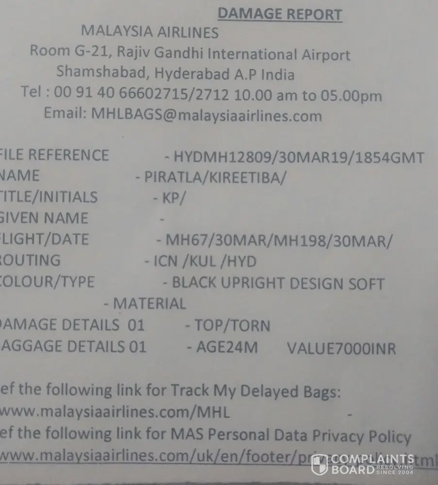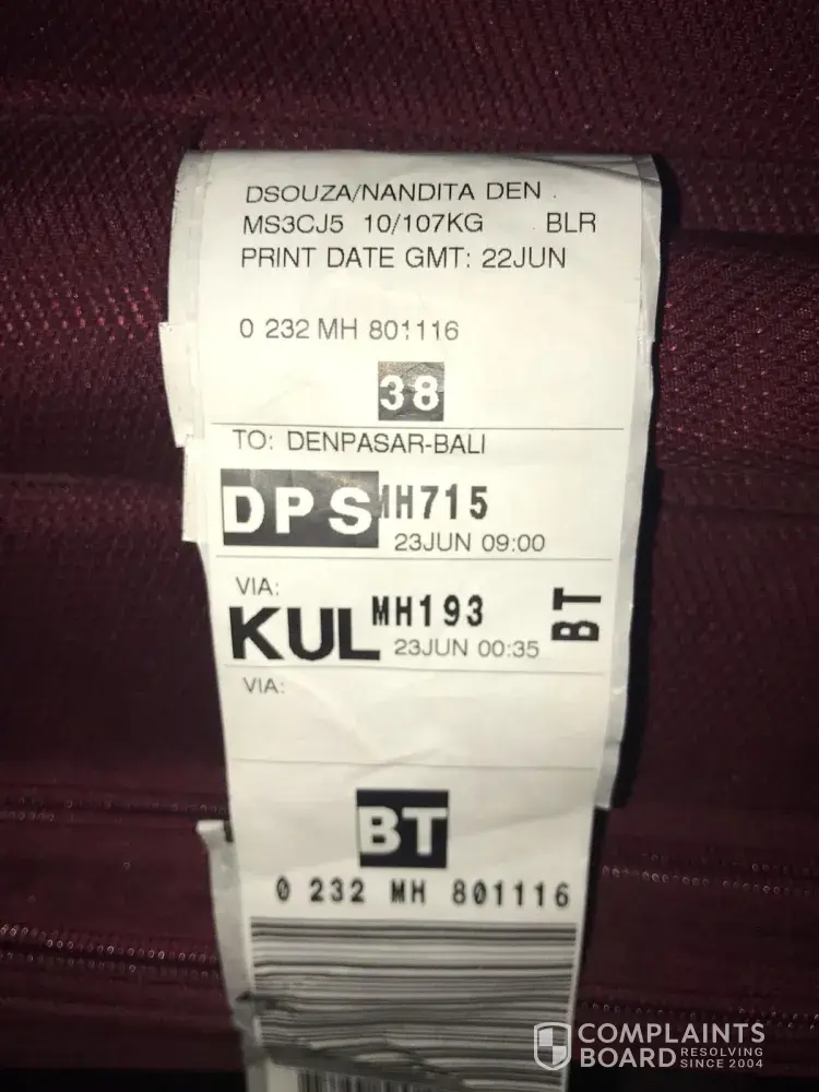 Finally on 29june when we checked in for MH850/MH192 for our return to BLR, we asked again and the agent informed us that the bag was not received. We specifically told them we are leaving Bali, if the bag is found please send it to BLR.