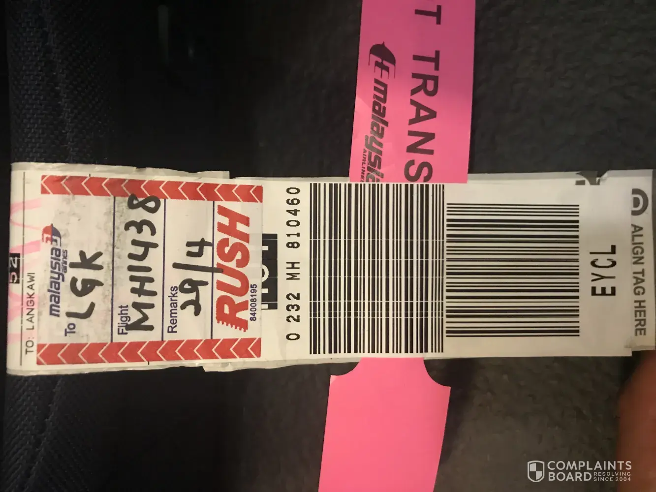 We traveled to Bali on MH193/MH715/23JUN BLR-KUL-DPS under booking reference MS3CJ5. We were 7 passengers and had a total of 10 checked in bags. On arrival into Bali, one bag under tag no.MH801116 was not received. We raised a claim under reference DPSMH19441.On 23june night a bag was delivered to our villa-it had tag no.MH801116 on it but the bag was not mine! The agent at the check in counter in Bangalore had affixed MY baggage label on someone else's bag!(photo attached).we called and emailed MHbut our bag was not located.