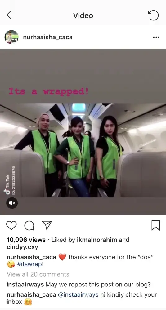 Cabin crew gedik sangatlah dekat instagram @nurhaaisha_caca. Menari nari hmm pityyy!