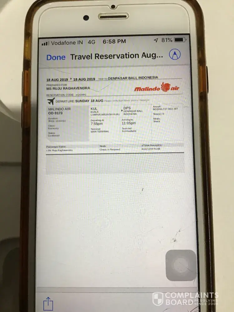 On 28th december, after i had missed my flight. I called up malindo air- customer careline. Spoke to one of the customer agent about my situation. The agent and the management decided to let me re-schedule my flight.