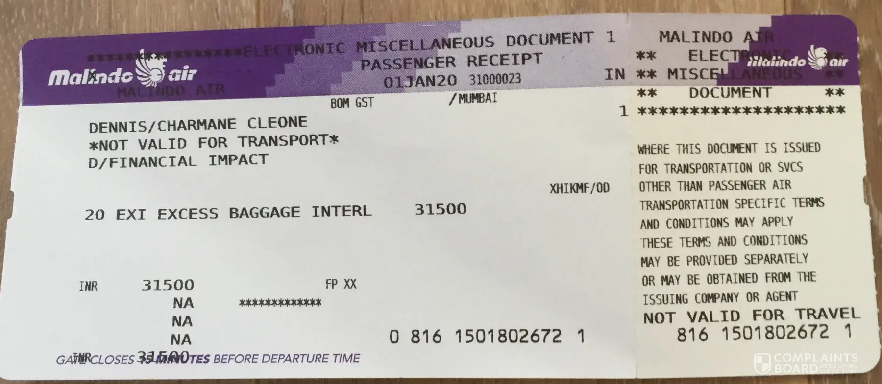 In an attempt to have them see reason I explained that, had my documents, issued by Malindo airlines stated that I had no baggage allowance, that I would have purchased baggage allowance in advance for a fee of approximately US $120 but that, because they clearly stated that I had a 20kg allowance, I had not even thought to do so.