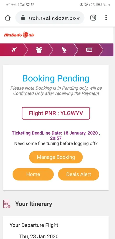 I was online booking my flight ticket, when reach payment page out of sudden your website down & there is no respond for my payment. When i click refresh then it came out message saying "Booking Pending".