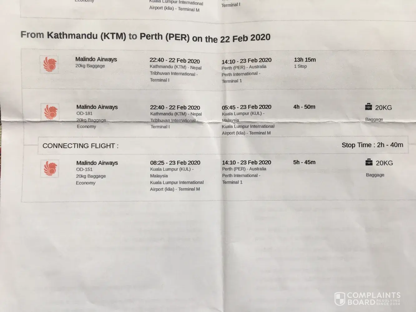 I booked flights for myself and my wife in 6th Jan 2020 with malindo airways to take us from India to Perth via Malaisia on 23 april 2020
