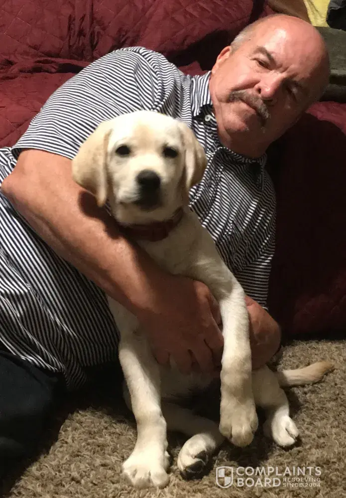 Still excited about our girl. She has trained really well and still hasnt chewed anything up. Vet confirmed that she is teething. Just trained well. Its unfortunate that the reviews are so split and i agree that seems shady. Back to what i originally said though, owners- check it out yourself and if there is any question, walk away. Plain and simple. We didnt see any problems and feel like we've got a super good dog that is well praised by our other lab owning friends.
