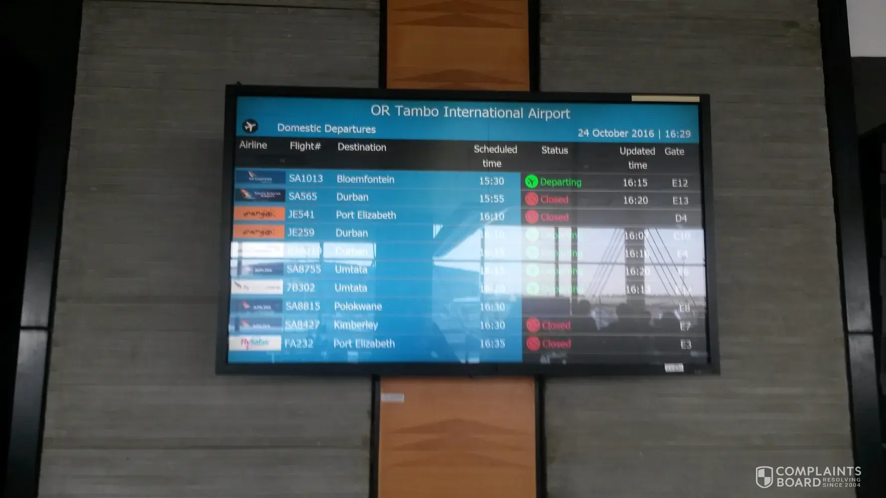 We flew with mango from johannesburg international airport to port elizabeth airport on 15 dec 2016 (Flight je525 – time: 05:55 to 07:40). Our booking reference number was: pdmlts.