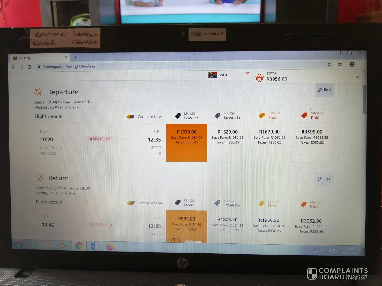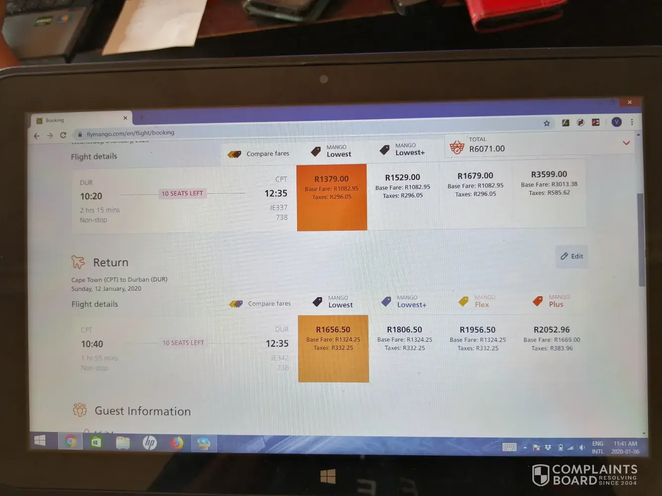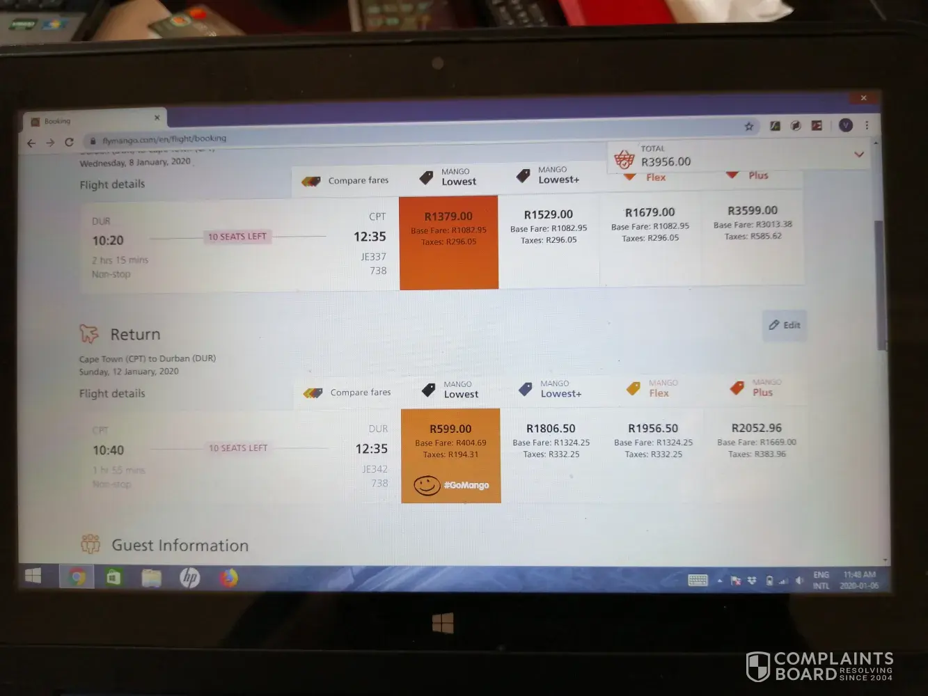 Mango Airlines bookings complaint.