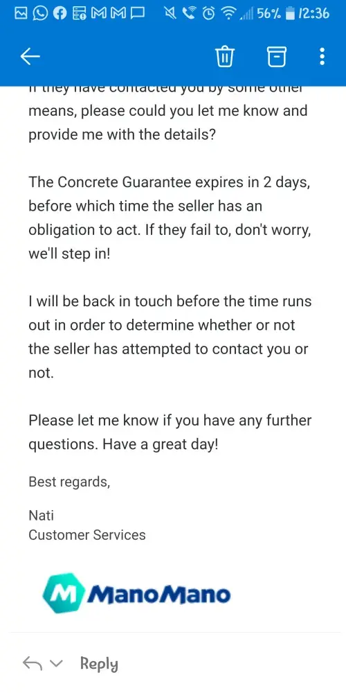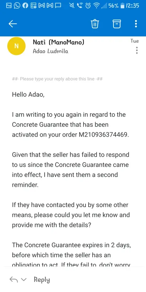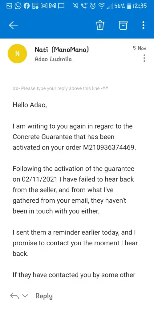 Despite saying they will try to resolve the case, ManoMano have done absolutely nothing to assist, and have not provided any kind of update.