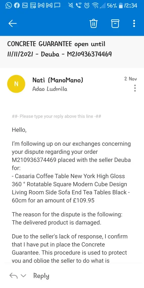 On the same day, I called ManoMano again, to say that I have not received a confirmation email for my refund. I was told by a gentleman (who I did not get his name) that he "can see it; it is just waiting for the supervisor authorisation". I asked him how long it would take, as I need my money and he replied "not too long", and I was certain that my refund would be processed and this issue would finally be resolved.