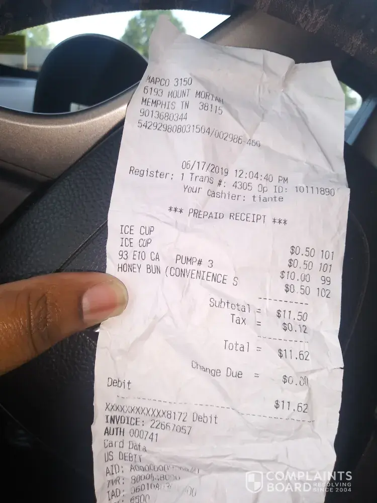 On 6/17/2019 I went to get gas on my lunch break at said location. I made purchase for $11.62, which included $10 gas, 2 cups of ice for $1 and a honey bun for $.50. When I got off wirk that afternoon i realized I forgot the gas. Employee Joshua Adams adviced me that the supervisor was aware and I would be refunded to my account. Because this is my favorite...