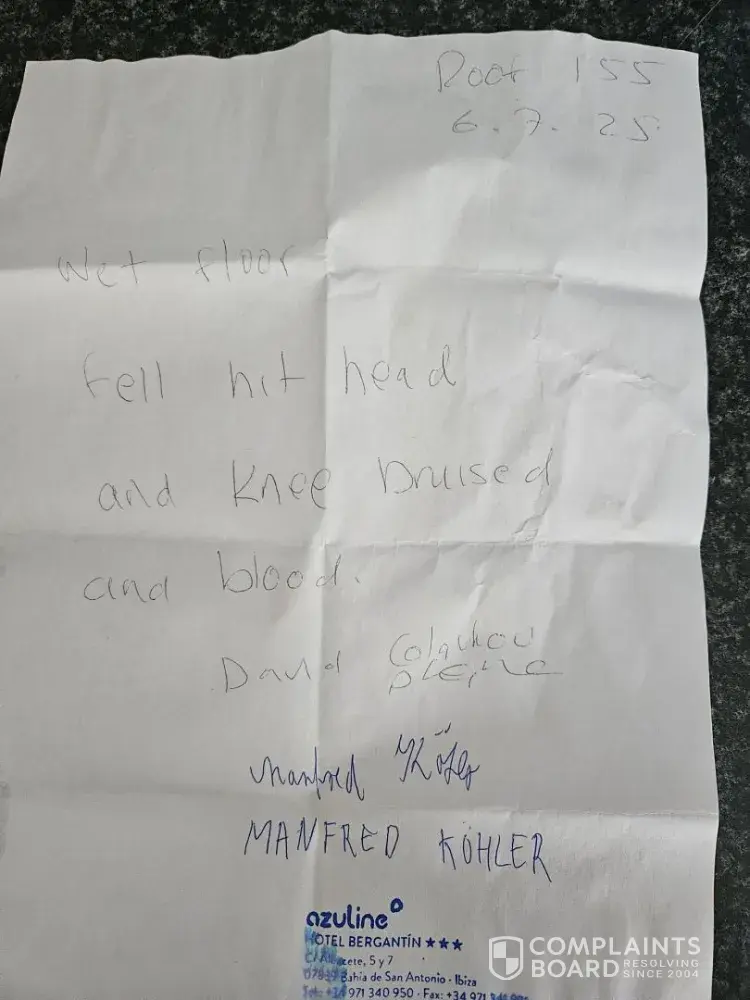 I made a complaint against Azuline Bergantine hotel, due to negligence by the hotel I was injured. I asked for first aid at the hotel and was told nobody on hand and no manager available. I left the next day after a 2 night stay and seeked medical attention in Scotland, this was a phone call to a specialist who advised I had possible concussion and to rest. I submitted photo evidence and a signed/stamped confirmation from the hotel confirming incident and fault. The hotel have advised you rejected the claim under the above reference, I now want to make an official complaint regarding this. You would have received all photos from the hotel but I am happy to submit whatever you need