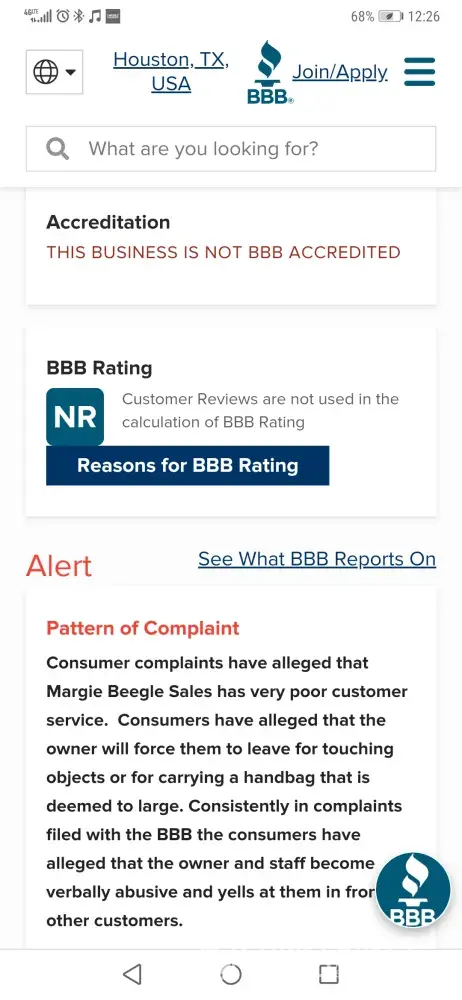Mine: "This weekend for Father’s Day I thought it would be fun to share my love of Estate Sales with my father while I was in Houston visiting him. Your Barryknoll home was on our list as we know the area well. We went in and noticed there were about 9 notes on the door, more inside but there was an item them didn’t have a price, nor a note on the wall about it so I asked them employee (a man having his lunch) how much. He said I had to ask the lady at the checkout table. When I walked up you/she was speaking to a woman whose purse was about an inch taller than mine. You/She was telling the woman she had to leave her purse with her/you. It was clear the woman wasn’t very comfortable with that and you/your employee told that grown woman ‘you people need to learn to read.’ I’m not sure who ‘you people are;’ Asians? But I found that to be grossly rude. You/your employee then looked at me yelled ‘one dollar’ (about the item in my hand) and I walked away. My daughter, who looks like a child but is actually an adult herself, found a rain poncho in the hall closet with no price, nor was there one of the million notes on the wall about it. When my daughter asked how much she/you fussed at her to ‘learn to read.’ When I heard that, I told my family of 5 I refused to stay if this is how you treat people. So, on my way out I quietly came to you/your employee and told you that we were leaving because you told a grown woman to learn to read (speaking of the woman of which you took the purse). You/your employee told me that no, she wasn’t grown and that I needed to teach my children to read. Apparently, you/your employee thought I was talking about how rude you were to my daughter. But I hadn’t even heard what you had said to my daughter. You yelled at us all the way out the door. As we were leaving another man came out and said he was leaving because he was tired of how rude you were to everyone. That man had several items in his hand to buy before we left. But you lost him. As we were walking to our car, two couples were coming up and the man who was leaving with us told them how rude you were. I thought you might like to know that you lost 11 customers because you couldn’t be polite enough to not show how bothered you were by simply repeating yourself. I live in San Antonio and enjoy doing Estate Sales on the weekends and I’ve never experienced rude people. I’ve had nothing but wonderful experiences. The 3 others we attended in Houston were wonderful as well. My parents will be 80 soon and it will be sooner than I care to think about that I will have to hire an Estate Sale company to handle their home. I now know to look online for reviews. I will not hire anyone who treats folks as your company did this weekend. And sadly this is normal for you. Your reviews all over the internet or abysmal. And it sounds like the same issues over and over. In case you were not the employee in question, she was a younger woman (I’m 50 so younger than I), heavy set with short brown hair.