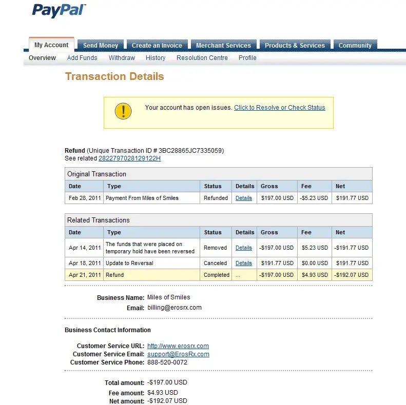 Then I later discover via PayPal that the alleged deceptive