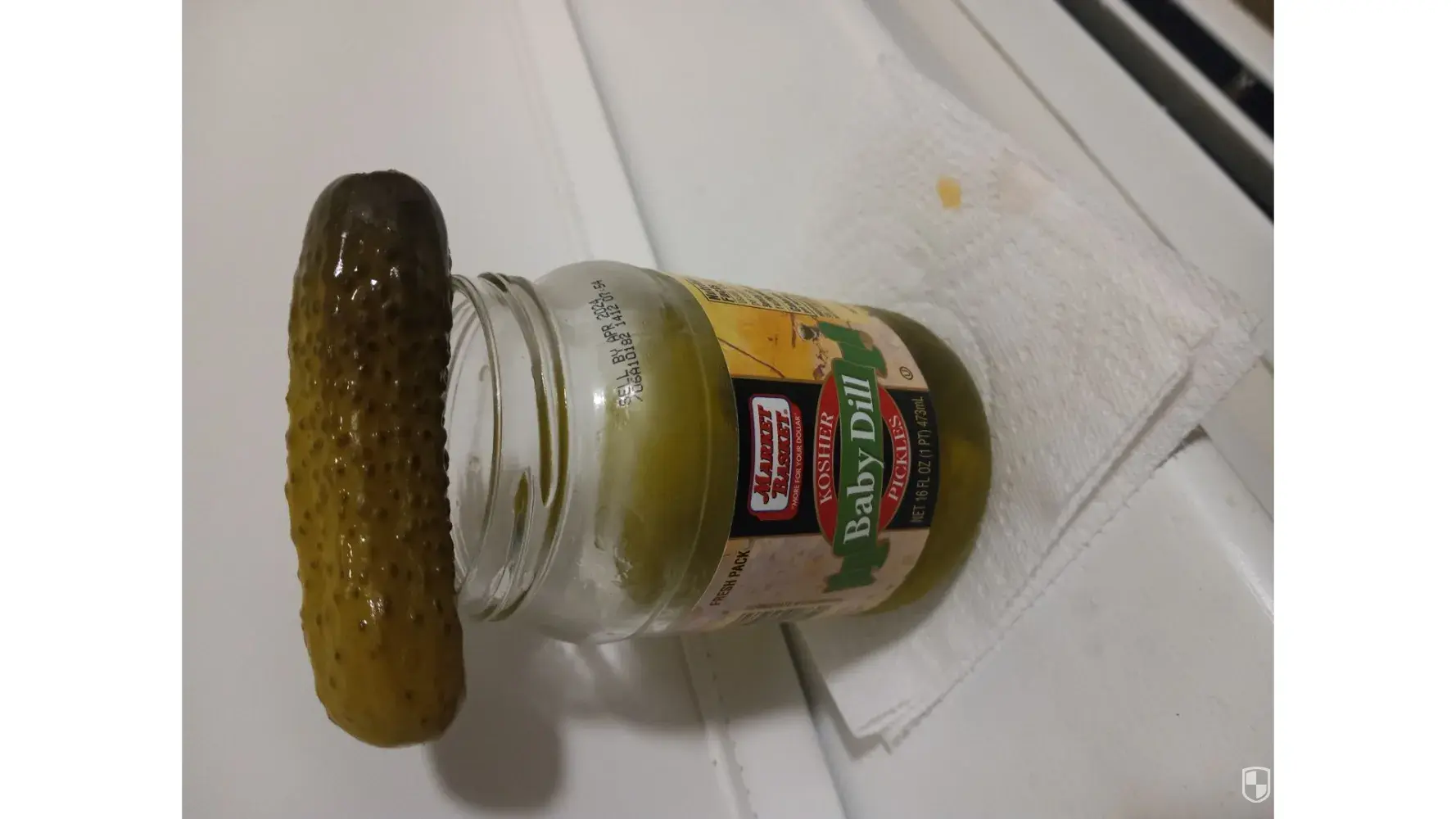 As I'm eating my baby dills I reach in the jar and pull out this big full size pickle. I'm very sad/unhappy/unsatisfied now I have hardly any baby dills left.