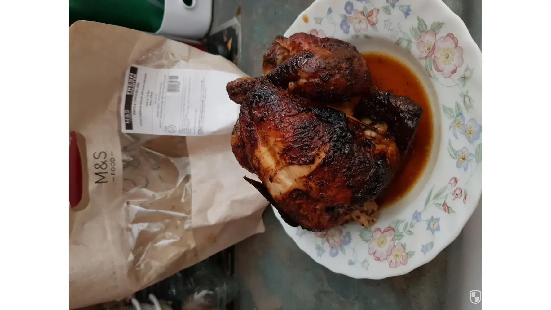 On the 12th March, I bought a roast chicken from the Food store at M&S Bangor at Bloomfield. The following day, on opening the food bag, I found that the chicken was overdone, with the skin burnt and in particular, the wings were badly burnt. I had also had a similar experience in February, purchasing a roast chicken on the 25th February, then finding it burnt and getting a refund of £6.50 on the 27th.
