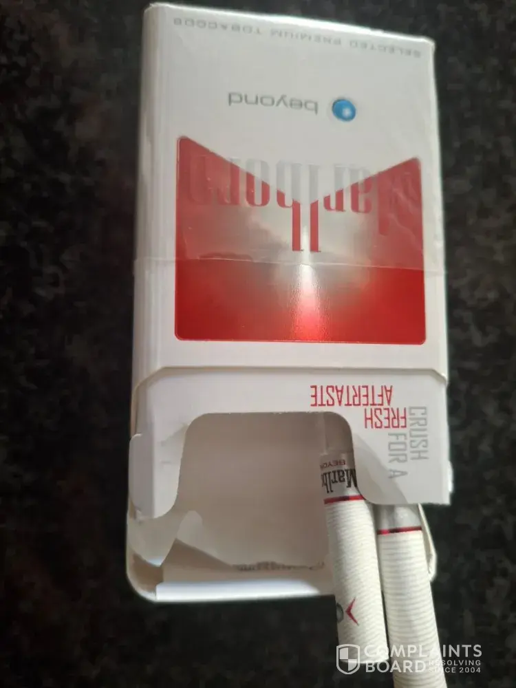 I am very dissatisfied with Marlboro Red Beyond. For the last couple of months i have purchased from numerous stores in SA and every box that i have received has +-8 cigarettes that do not have the menthol ball or the cigarette burns like cardboard. I have been using this brand for 11 years now. I have kept samples. Really disappointing when you spend so much money to receive almost half a box you cannot smoke.