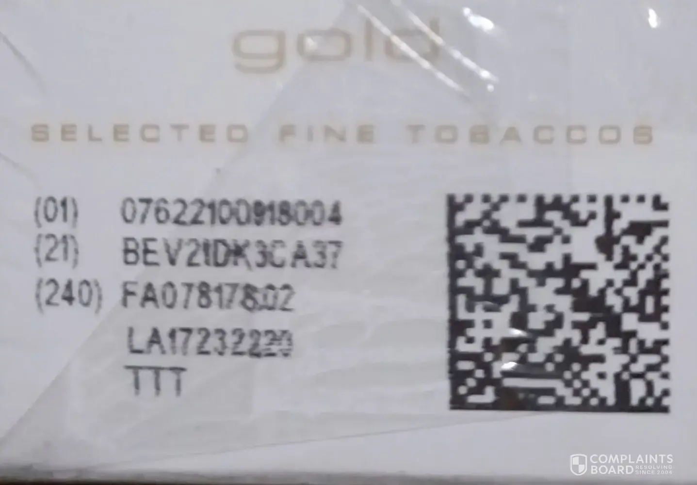 I have been your client for 34 years now and would like to say that I purchased 4 cartons of Marlboro beyond blue that have menthol activation without pressing the pop iceball. Bought June 2025, barcode of one packet [protected], I am please requesting 40 packets or value of R1800 / $99. My email address : [protected]@gkohealthservices.com , mobile : +27 828...