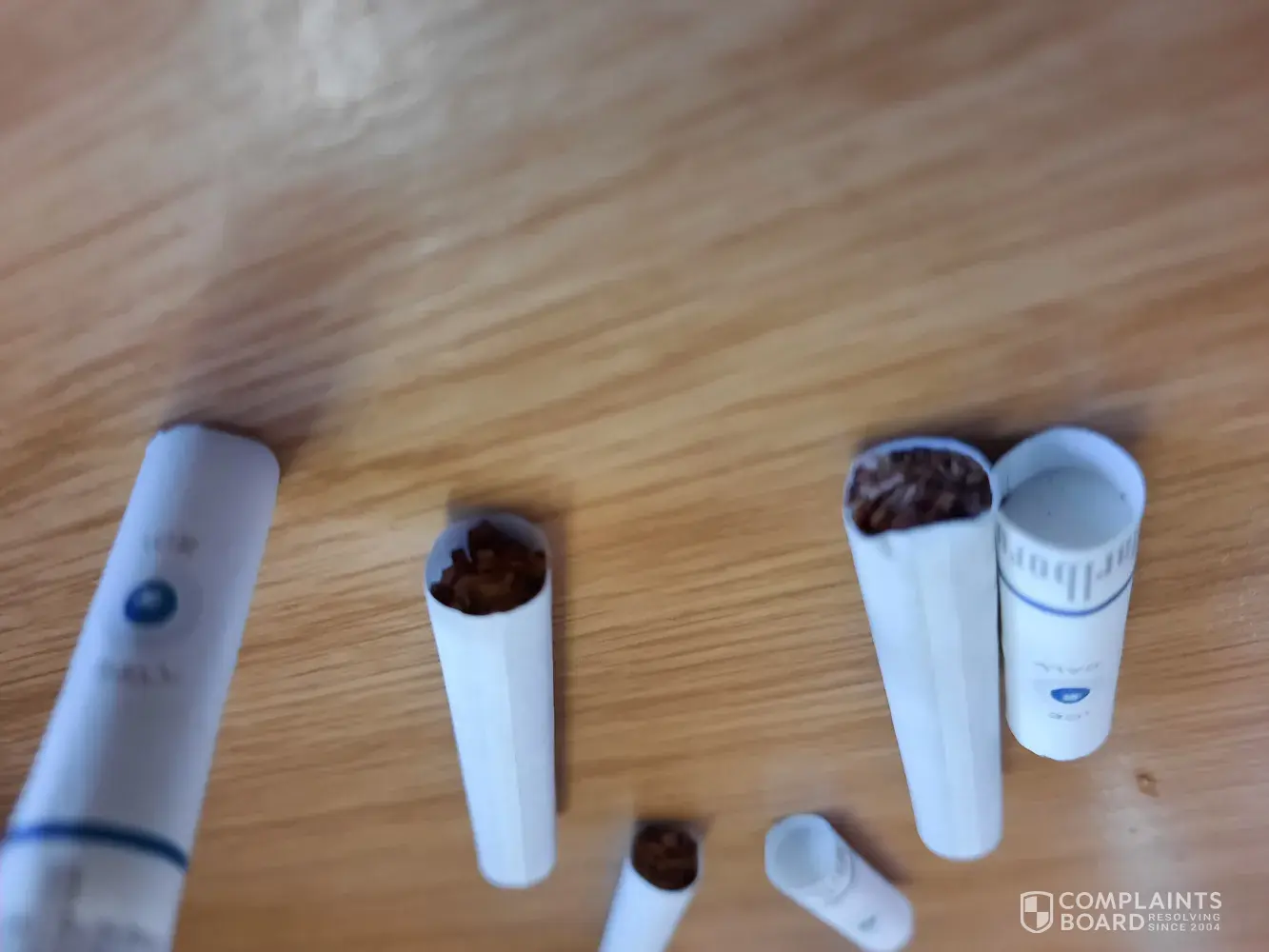 I keep finding massive bits of wood in my cigarettes. I have taken pictures and still have them. They take up almost an entire cigarette sometimes. This is not good. It also can cause the head of the cig to deform and push out sideways when burning. Dangerous to flammable things near you. Can I speak to someone about this please? I have experienced this over and over.
