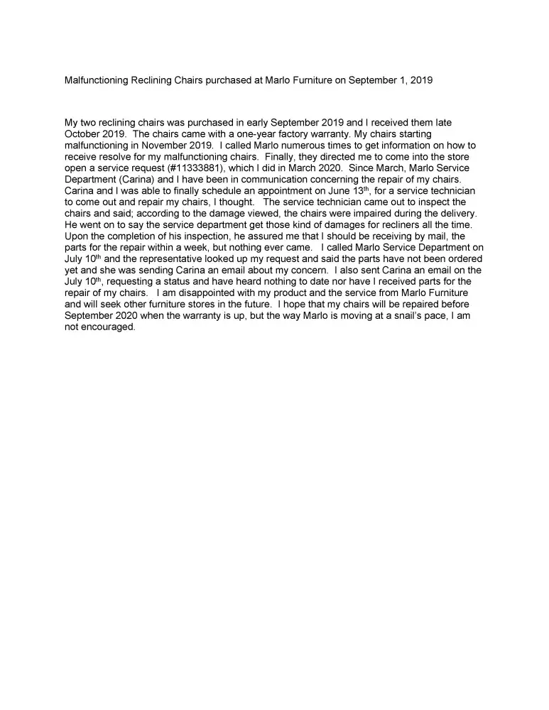 Read full complaintMarlo Furniture complaints: history and resolution overview