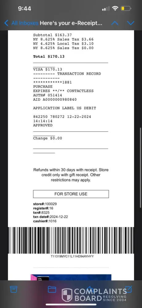 She kept insisting it was not from the store when I bought it 1 week prior.