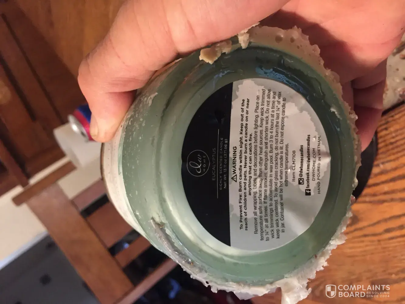 I will not be buying anymore candles from this store. And I strongly recommend contacting DW HOME... and taking this product off the shelves.. someone else might not be so lucky..!