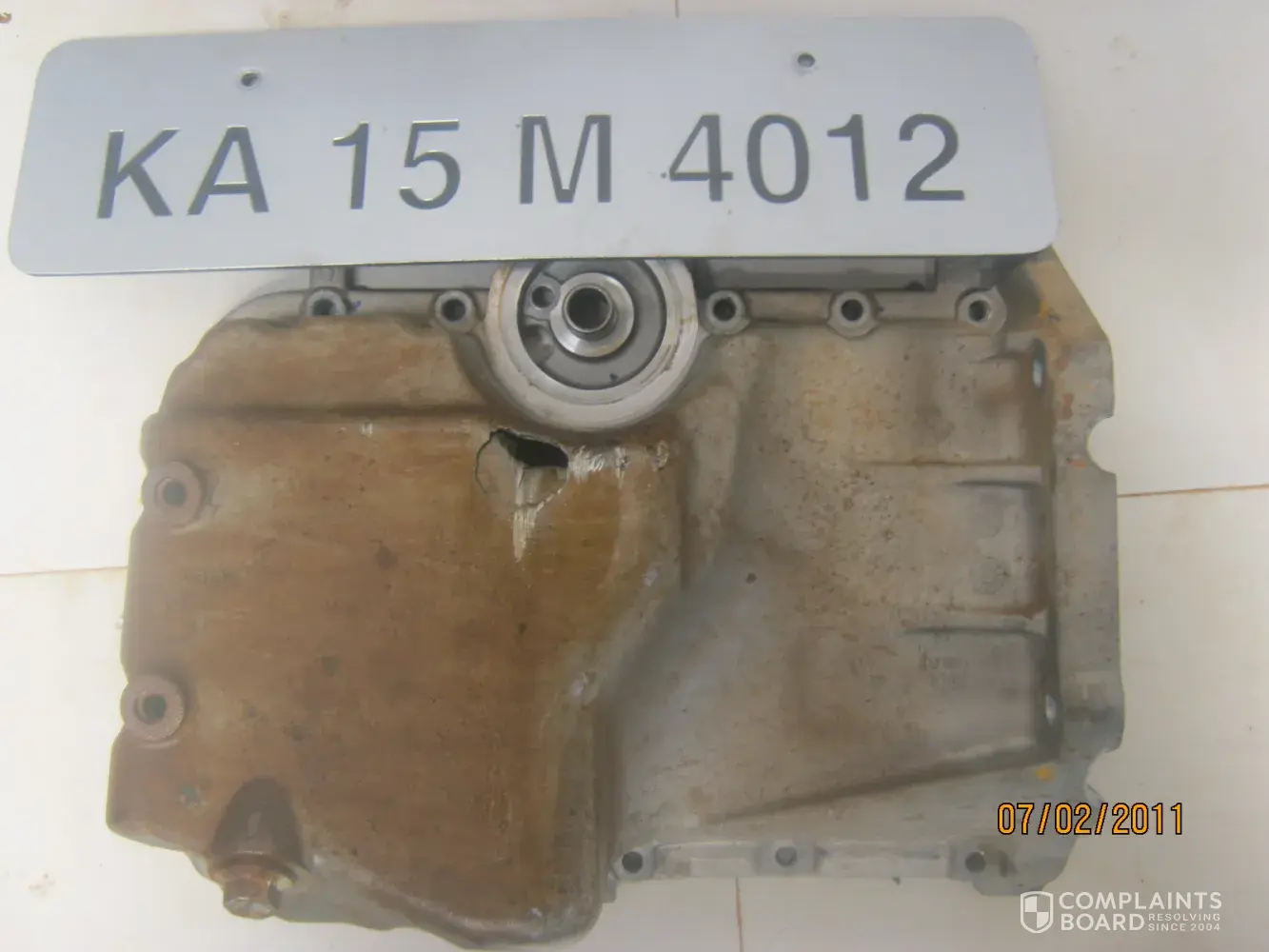 on 19th march 2011 I with my wife took the car to distribute the invitations of my son’s marriage fixed on 21st march to my relatives. on the road while passing a small road hump I heard a sound in the car and I stopped. being experienced I checked the oil pan which was damaged and oil was leaking. I was once again shocked, phoned to aditya automobiles ltd sagar. he promptly responded and came to the spot. he took the car to his service station. he was not having new oil pan and temporarily repaired the damaged oil pan.