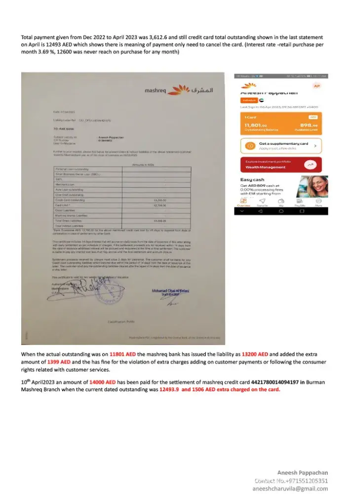 3701aed this is how mashreq cheated me still continue as below but I don't understand why they mashreq bank not following customer rights in resolving issues.
