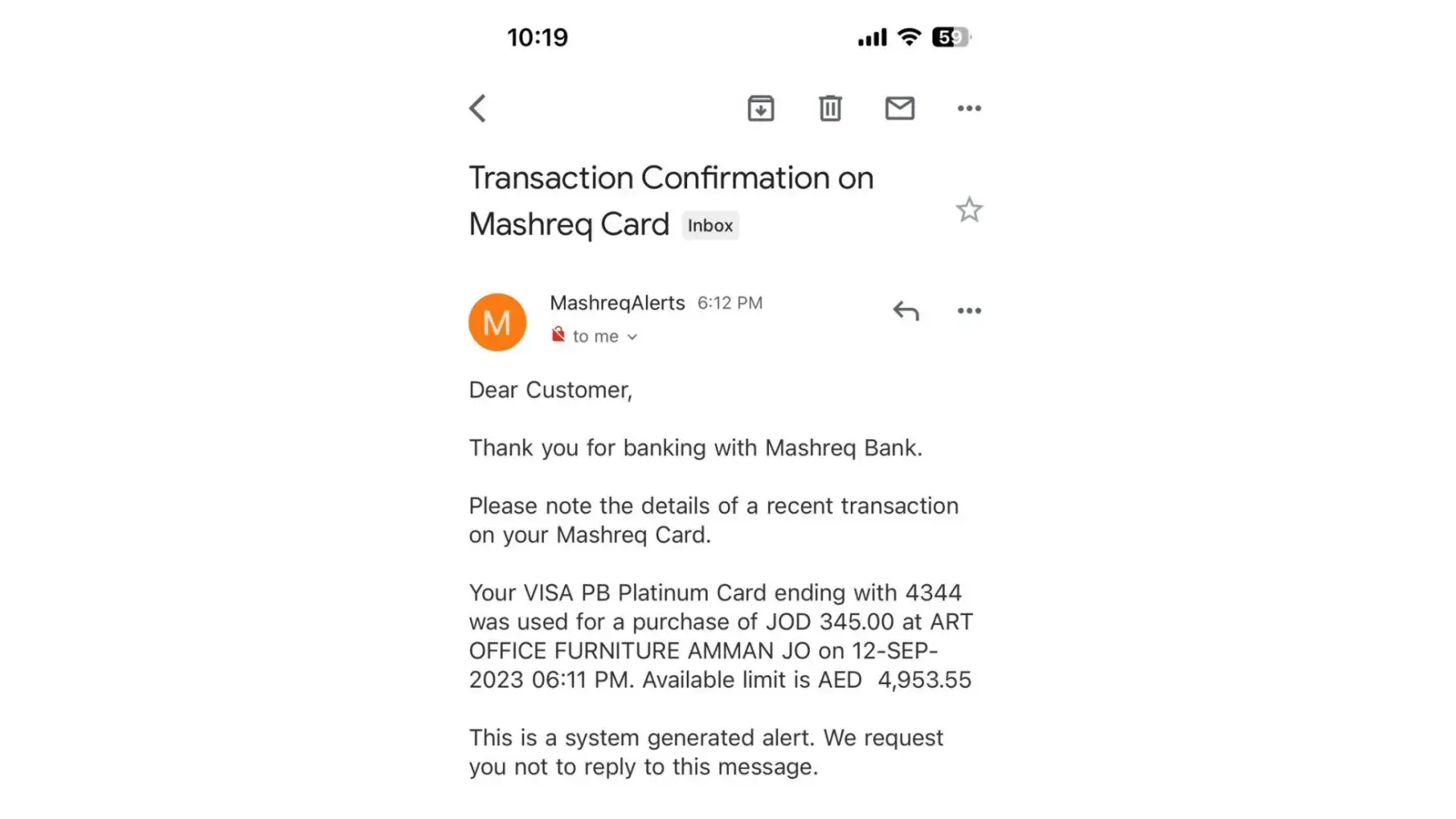We people always believe in bank security for our financial transactions, the below mail really makes me worry and I don't get a secure feeling of having an account / credit card with Mashreq Bank.