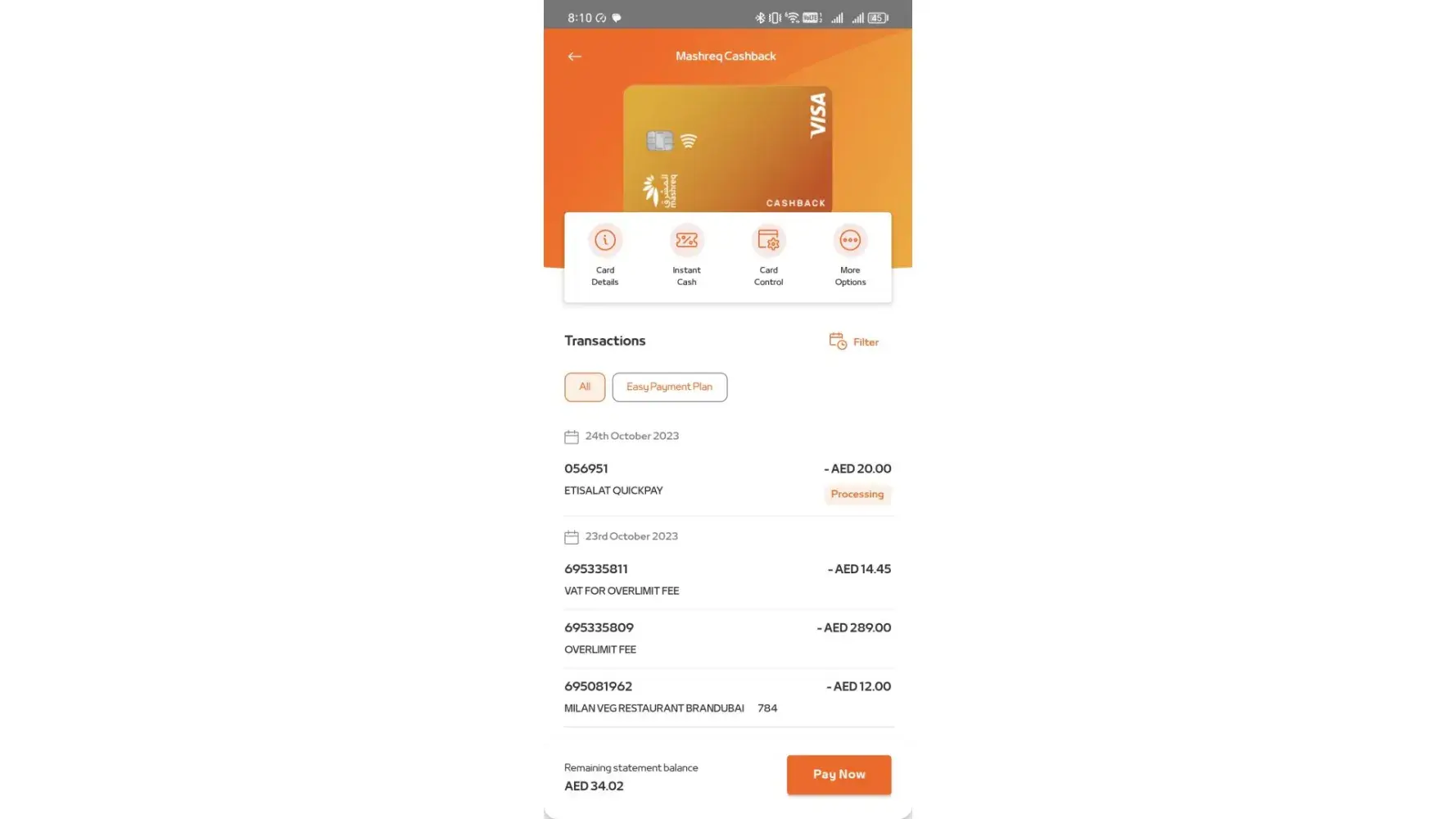 Be careful with this bank when using credit card. They will charge you 300 AED if you used even 1 aed over your credit limit. What happened to me they charge me twice because i only had 100 aed available balance so when they charge me 300 aed for over limit charge. I had a negative of 200 aed then they charged me again 300 aed because I was over limit without giving any grace period. So if you did not notice they will charged you and when you max out your credit limit you will be again charge the next month.