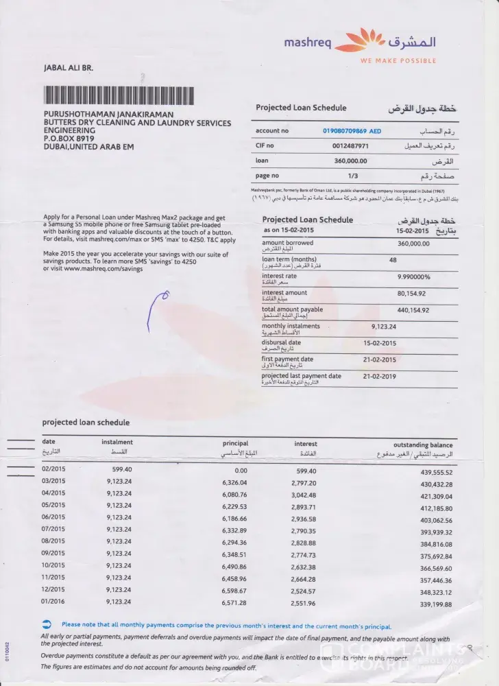 Good Day... My agent from FAB (First Abu Dhabi Bank) submitted the demand draft to Mashreqbank -Airport Road Branch in Abu Dhabi to settle my outstanding liability on October 2, 2018. As per the liability letter issued by Mashreqbank with Liability Letter Ref: CIU_OPS/LI/0764/258029 dated 26/09/2018 (copy attached); the "settlement proceeds received by cheque must allow 2 days for clearance" and on October 4, 2018 I received SMS from Mashreqbank confirming that FAB demand draft has been deposited to my account but to date my agent confirmed that he is yet to get the Clearance Letter from Mashreqbank. Also, when I checked my loan statement on October 7, 2018, it was showing that I have zero outstanding(screenshot attached). I would like to understand how long is your process to issue the clearance letter. Appreciate if you could look into this and expedite the process of the clearance letter to FAB.