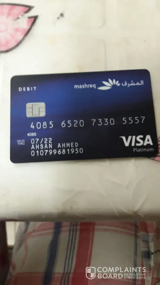 • The complaint was raised on the 11th July 2017 and since then, i have not received any calls from Mashreq Bank to tell me why the card is on blocked
