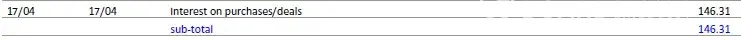 17/04 interest on purchases/deals 146.31