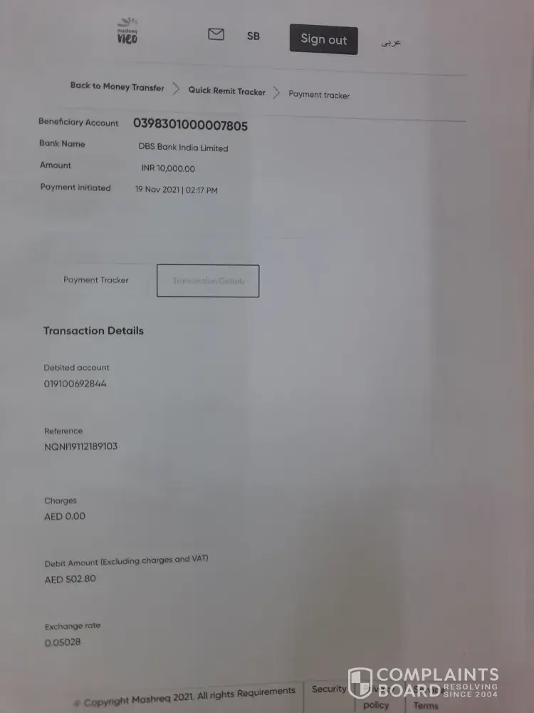 I sent money transaction online from my account to India quick remittance. Transaction reference number NQNI19112189103 transaction date is 19th November 2021.