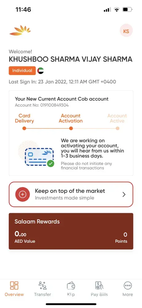 I opened mashreq current account through online services on new year eve and today is 21st of jan till now my account is showing not active. I called customer care twice but they are also useless. so i never recommend mashreq bank as they are very irresponsible