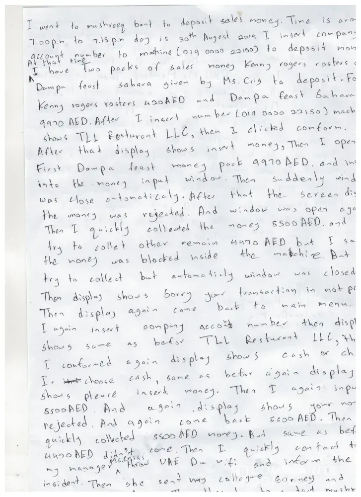I would like to complaint regarding our cash that has been deposited earlier, August 30, 2019 thru Mashreq Bank Sahara Centre Branch Basement 1 ATM Machine Number : itm6911 amount of 4, 470aed has been captured without any slip shown. Attached herewith is the incident report of my staff to explain clearly what had happened earlier who encountered the situation. We tried to contact you (customer care) but no answering maybe because today is Friday. Please see attached file for more details and do an immediate action to retrieve our money. Please feel free to contact me with my mobile number [protected] or our PRO's contact number Mr. Mandeep Singh with +[protected]. For further information, please contact us.