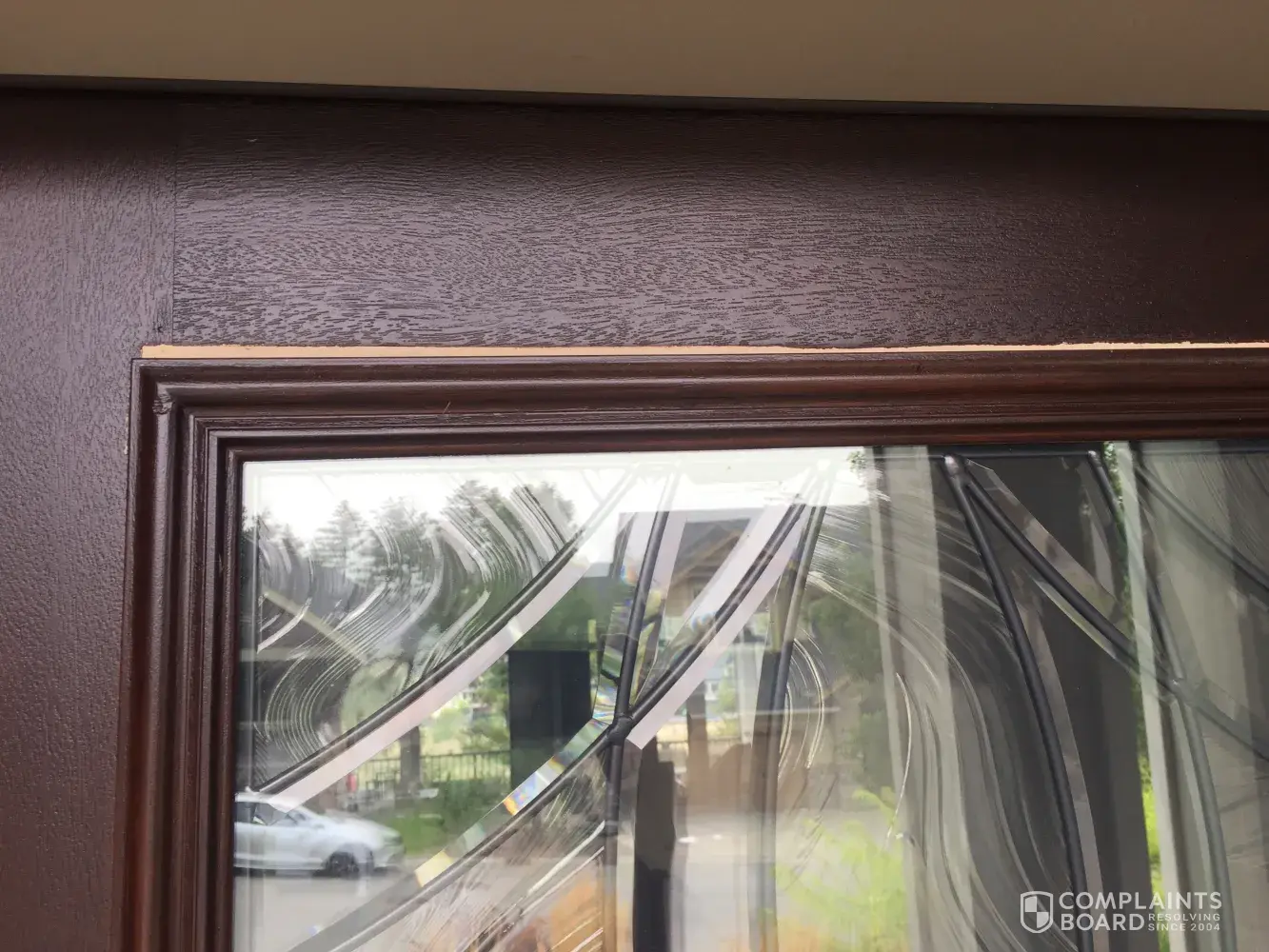 I'm having two problems with my Masonite door. 1. there appears to be adhesive creeping out from around the window and 2. there seems to be a "chalky" substance that randomly appears on top of the paint. The chalky stuff wipes off, but it comes back in about a week and makes the door look "comoflauged" from a distance. The customer is unimpressed... Masonite customer service has yet to even respond to my concerns.