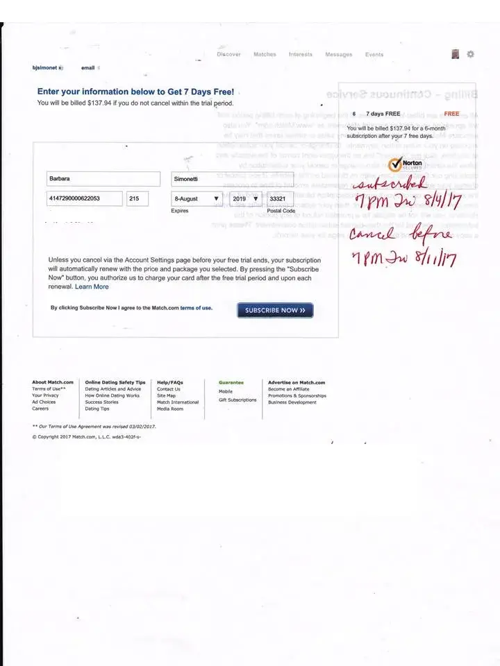 I was on match.com 3 months subscription - and the first time I paid for match $30 dollars and I check my account on june I have charge of match