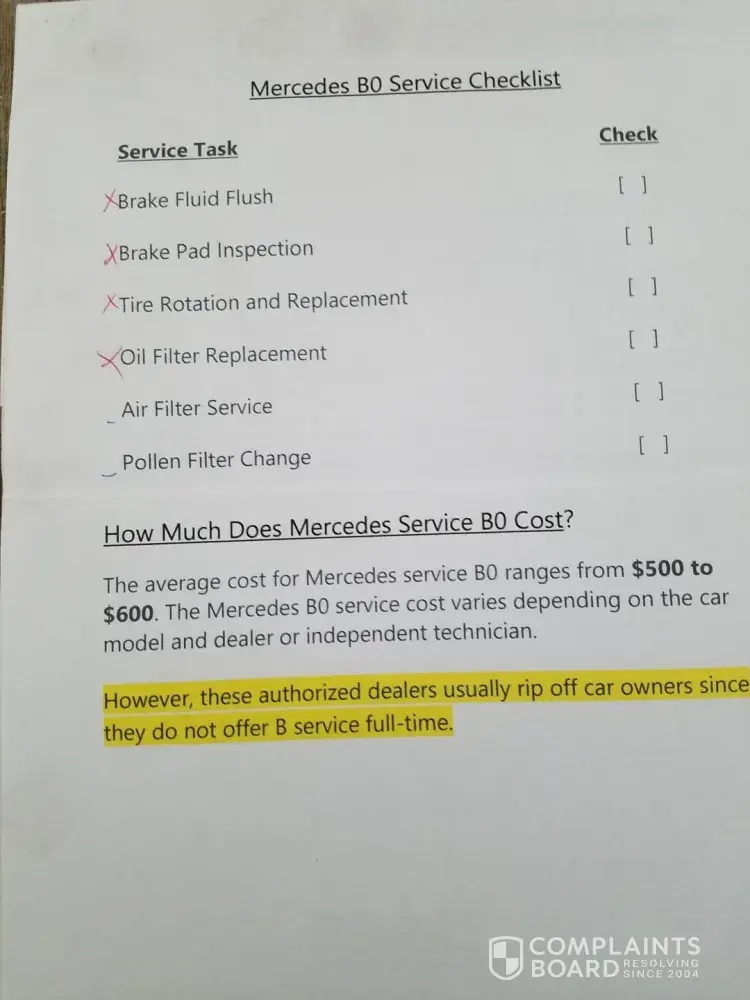 Jacqueline D. Harrigan 170 Rushing Creek Trl, Dallas, GA 30132 [protected]@yahoo.com [protected] On 10/21/24, I had the car serviced for the B-Service. At 4:16pm, Mavis called to let me know the car was ready for pick up. When I picked up the car, I paid $764.57 for “B-Serviceâ€. ST: 0562/WO: [protected]/INV: [protected]. On Tue 10/22/24, on my way to work...