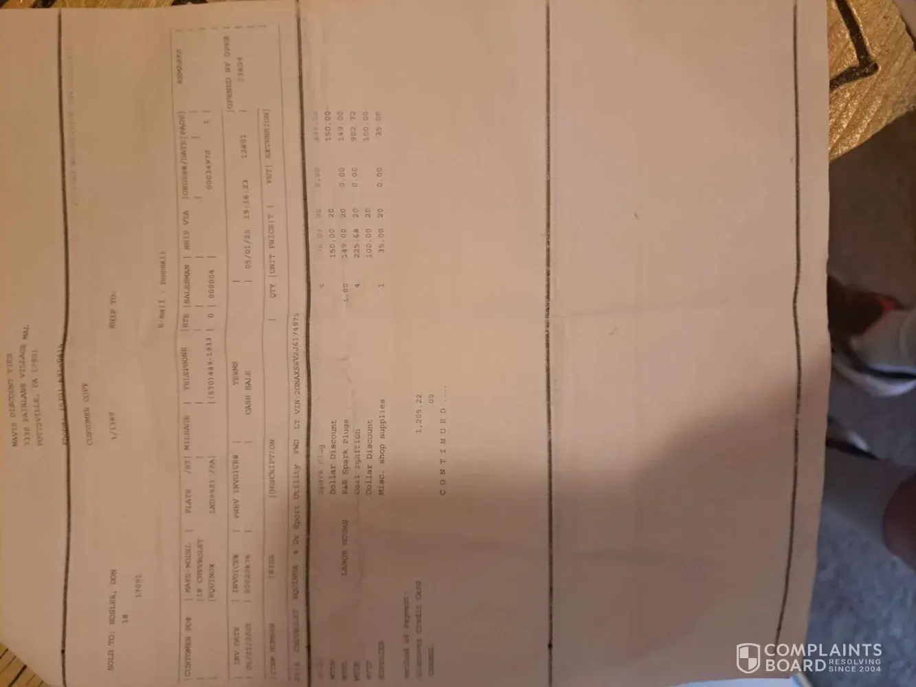 My chevy equinox began misfiring at around 5:45pm on 5/1/25 and all other garages were closed. Mavis in pottsville, pa was luckily open until 8:30pm and completed the repair of 4 spark plugs/4 coils while informing me that driving any further could have blown my engine! They charged me $1200 for this... Later on I visited my regular mechanic for an oil...