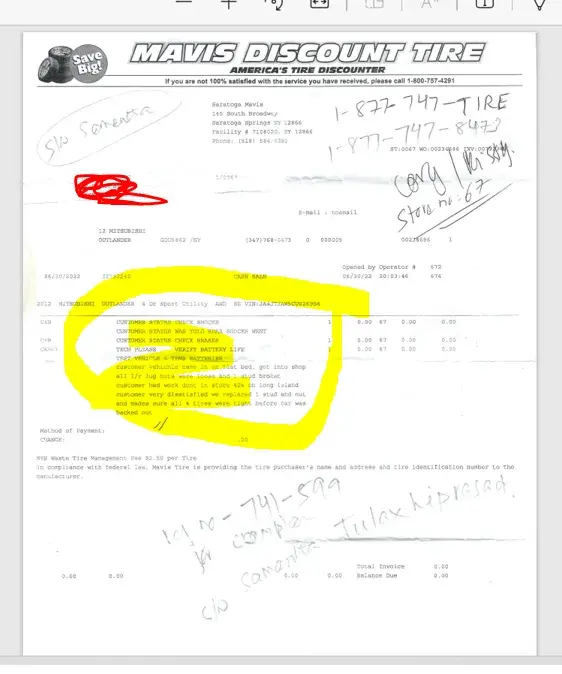 Mavis Discount Tire Vehicle repair safety issue
