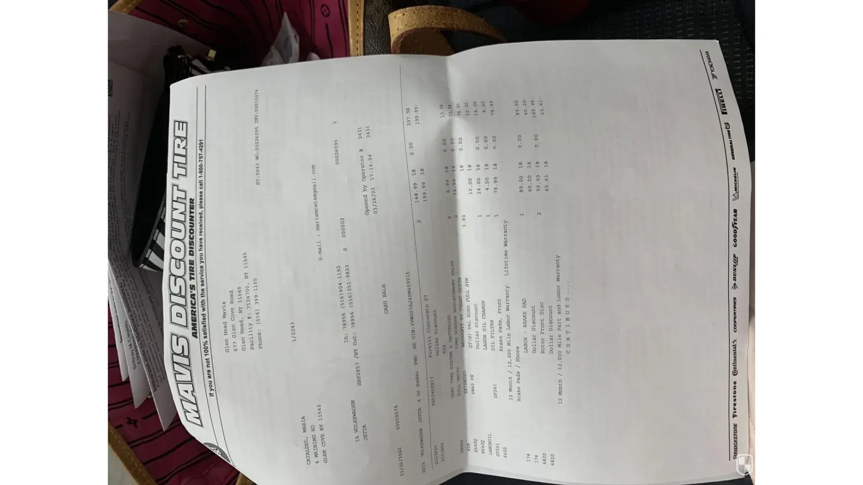 So this would be the second time Mavis glen cove first time 2015 Jetta paid fir oil change car was smelling and noise drive a day or so. Come to find out the tech never put cap back on and oil was splashing all over engine. I called the day after the change and complain of a smell and asked if they could check they refused. Only found out when I pull over and my husband open hood to see the incompetent mess. Took back and they put oil in and rectify. Needless to say did I did not use that Mavis again. I could go on but I think you get it. Now 3/30 I got front tires on sat 3/27 which I had purchased originally in March 2021 all 4 got ins and in June front 2 tires bubbled had to pay full price they said I did not add ins. That’s number 1. So again front 2 tires have bubbles call and they again tell me I don’t have the insurance. This is glen head Mavis I found my receipt proving I had the insurance. Schedule apt for sat3/27 to have 2 tires and oil change they call say brakes are needed my daughter agreed. Go to pick up car bill is $980 hello never agreed to price on brakes and rotersand pads and alignment after complaining they discount bill to $799 on my Mavis card was billed. My daughter drives car 3/29 and notices oil light on saying empty need oil change I assume they did not reset. My husband checks this am and of course another mess up there is no oil no oil in car. How do you forget to put the oil in the car. Who is working at these places I am furious my husband can not take car cause he will literally beat some one up as this is true negligence and incompetence. I want some kind of feed back and credit if my motor seized I wound be suing this is totally unacceptable. I will go in news and blow Mavis up with all the bad complaints and incompetence. Please get back to me [protected] Maria Cataldo 4 Manning Rd Glen Cove NY 11542