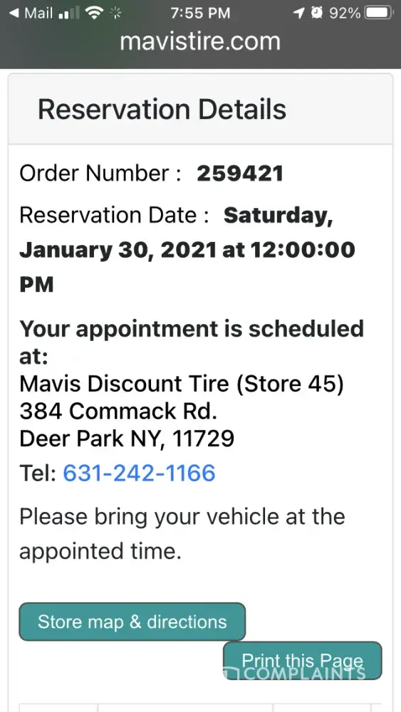 I place an appointment with Mavis discount tire Store 45 Deer Park New York. The appointment was made online. Store 45 call to confirm that appointment. On the day of the appointment I showed up 10 minutes early. I try to check in, Gave them the order number. The associate then them for me that they saw no appointment. Another words they blew me off!! This is not the first time but it will be the last