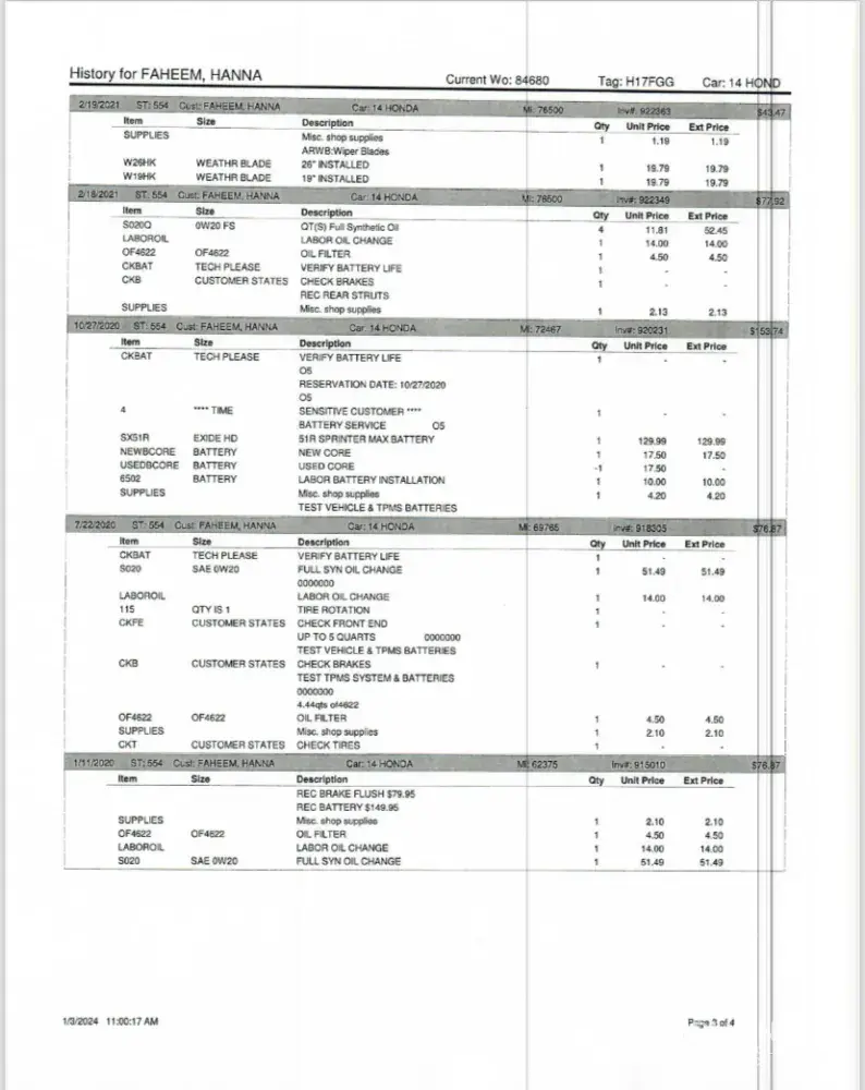 To Whom it May Concern, My name is Hanna Faheem, and I am reaching out regarding a situation that took place at the Mavis store located on 442 Elizabeth Ave in Somerset, New Jersey on September 7, 2023. I brought my 2015 Honda Accord to have one tire changed, an oil change, an alignment, and struts replaced. I paid for $1,664.00 for these services (see...