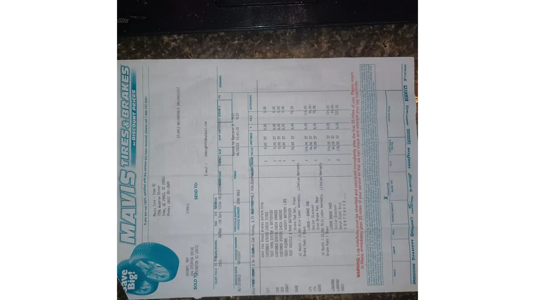 I took my 2016 Niasn Rouge to Mavis Discount Tire, Rahway, New Jersey. My Engine light was on, when the manager had my vehicle on the lift, he showed me additional work needed to be done, he never mentioned the engine light. He asked me did I have a Mavis Store card, yes I do. He convinved me to max out my Mavis store card. I had these repairs done. My...