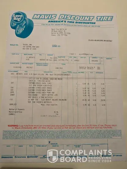 Read full complaintAuto damage while at Yonkers Mavis on 779 Central Ave. Yonkers, NY 10704.