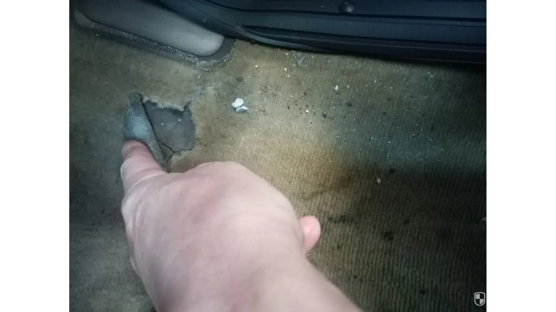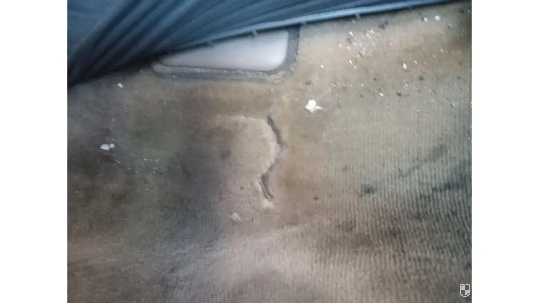 Damage to the left side of the front bumper, after an alignment. Also, leather in driver's seat has evidence of a burn in the leather.